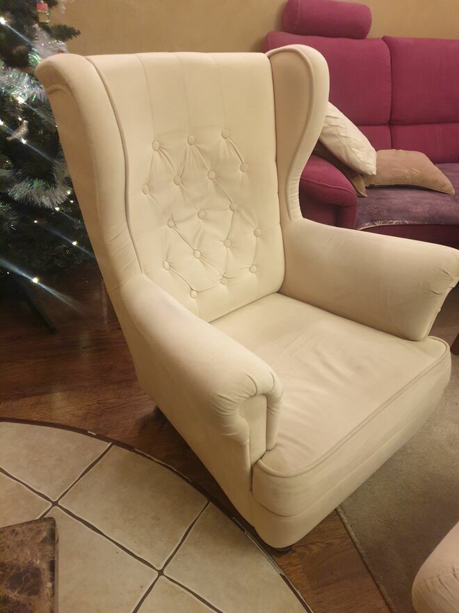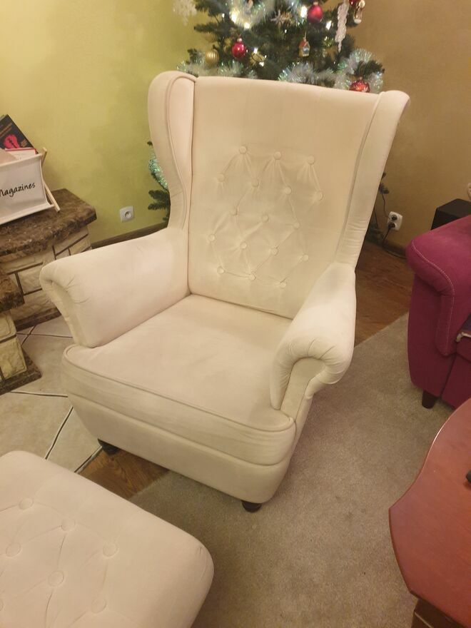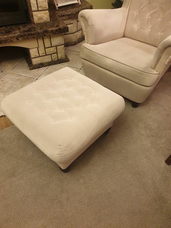 Mam do sprzedania fotel uszak wraz z podnóżkiem. Sprzedam tylko w komplecie. Kolor- jasny beż. Stan bardzo dobry. Odbiór własny.Sprawdź zainteresowanie tym ogłoszeniem